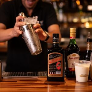 Se ponen todos los ingredientes en la licuadora, excepto el licor de café y el charanda, hasta dejarlos a punto nieve,